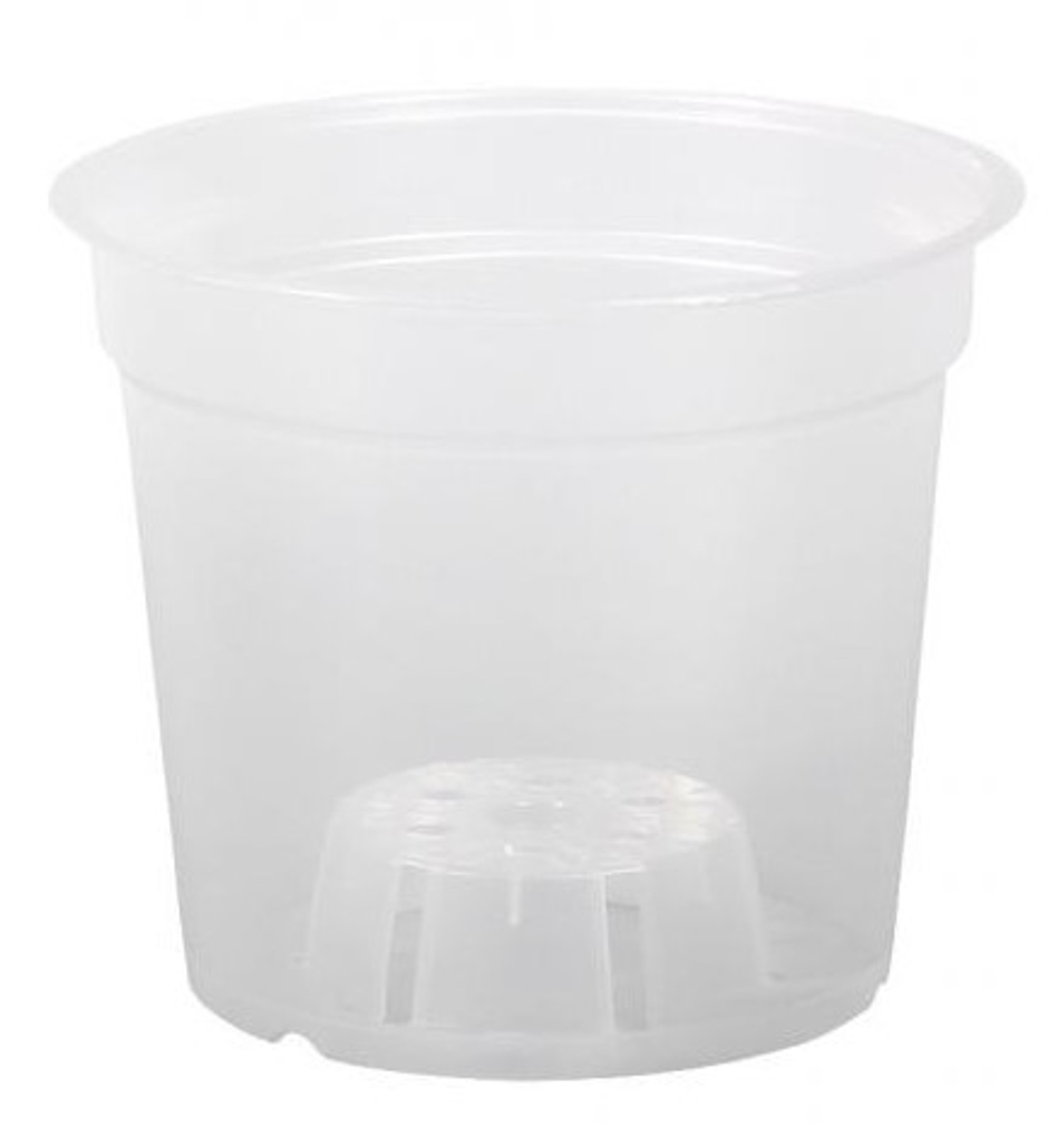 Plastový průhledný květináč s výrazně vyvýšeným středem dna v podobě zužujícího se válce. Květináč je vhodný pro různé druhy orchidejí. Barva: bílá transparentní.