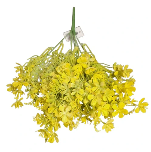 Tento umělý jarní trs žlutých kvítků je skvělým doplňkem do velikonočních a jarních dekorací. Drobná kvítka v jemném žlutém odstínu dodají aranžmá svěžest a lehkost.