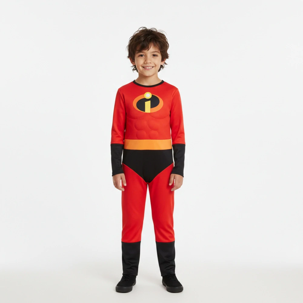 Dětský kostým Úžasňák je skvělou volbou pro malé fanoušky superhrdinů. Typický červeno-černý design s ikonickým logem na hrudi věrně připomíná postavy z filmu The Incredibles.