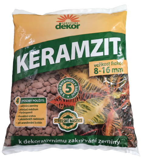 Keramzit Forestina Dekor frakce 8–16 mm, balení 5 litrů je přírodní lehké keramické kamenivo určené pro široké využití při pěstování rostlin i dekoraci. Vyrábí se vypalováním jílu při vysokých teplotách, díky čemuž je trvanlivý, mrazuvzdorný a zdravotně nezávadný.