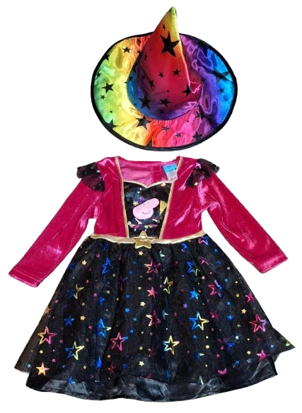 Šaty v pěkném stavu doplněno kloboukem, motiv prasátko Pepina, uvedena velikost 1-2 roky.