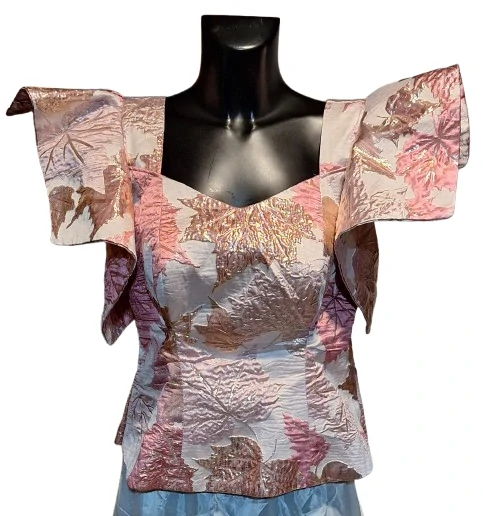 Halenka doma šitá na způsob korzetu pěkně vypracované s dekorem listů vhodné jako doplněk kostýmu velikost neuvedena odhaduji na cca 42.