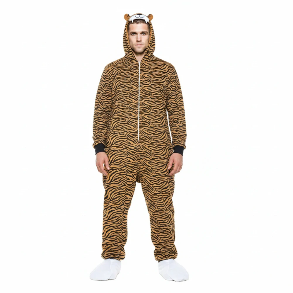 Pánský maškarní kostým Tygr je výrazný a zábavný celotělový overal, který zaručeně upoutá pozornost na každé akci. Realistický tygří vzor, kapuce s obličejem tygra a pohodlný střih dělají z tohoto kostýmu ideální volbu pro Halloween, karneval, tematické večírky, zvířecí párty nebo festivaly.