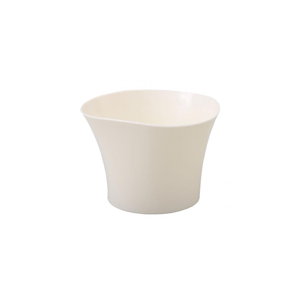 Plastový béžový lesklý obal určený zejména do interiérů pro květníky s petrklíčema. Půdorys má kruhový, směrem vzhůru se stává trojúhelníkový se zaoblenýma hranama. Rozměry: 12 x v. 9cm.
