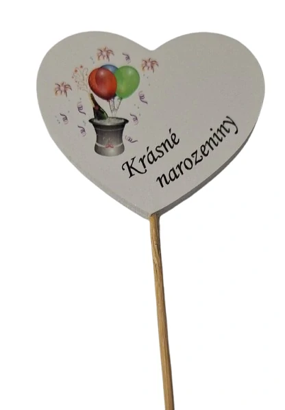 Zápich je ideální jako drobný dárek nebo doplněk k narozeninovým květinám. Díky dřevěné tyčce se snadno zapíchne do květináče nebo aranžmá a dobře drží.
